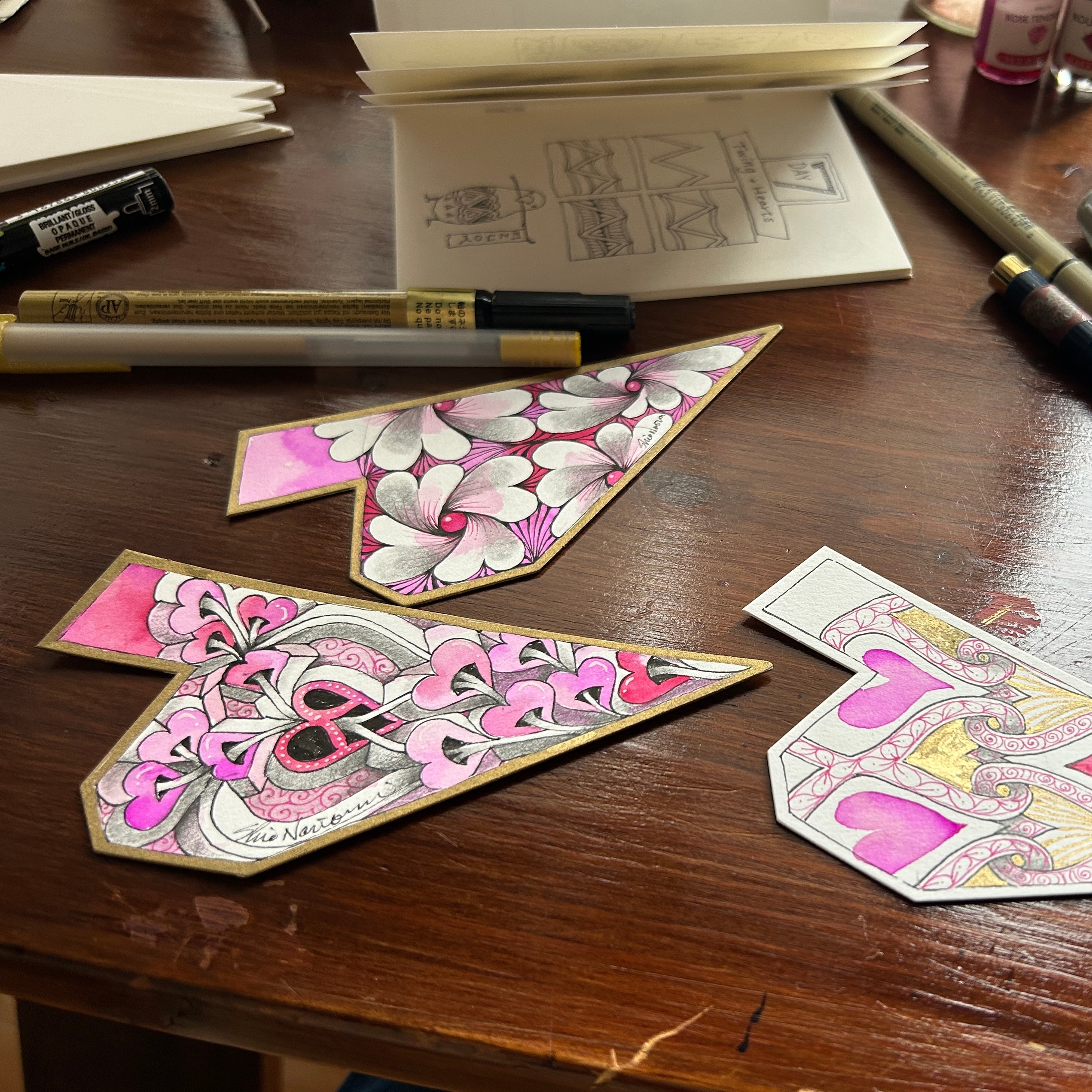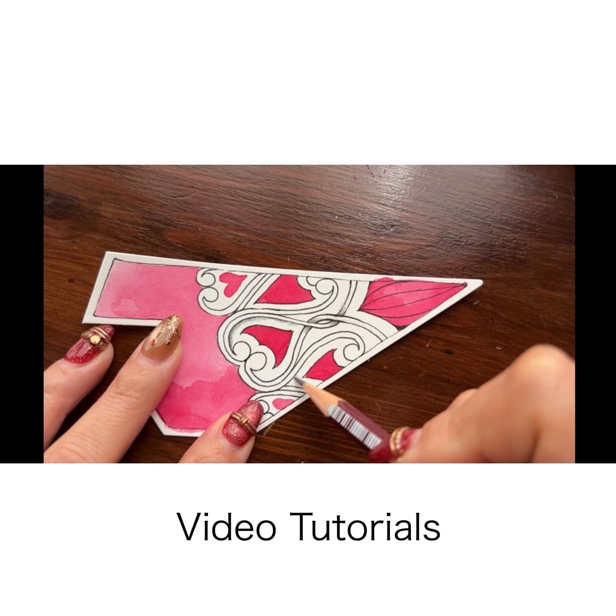 チュートリアルビデオ内では、黒ペン・白ペン・ゴールドペン・ピンクと赤のインクを使用しています。