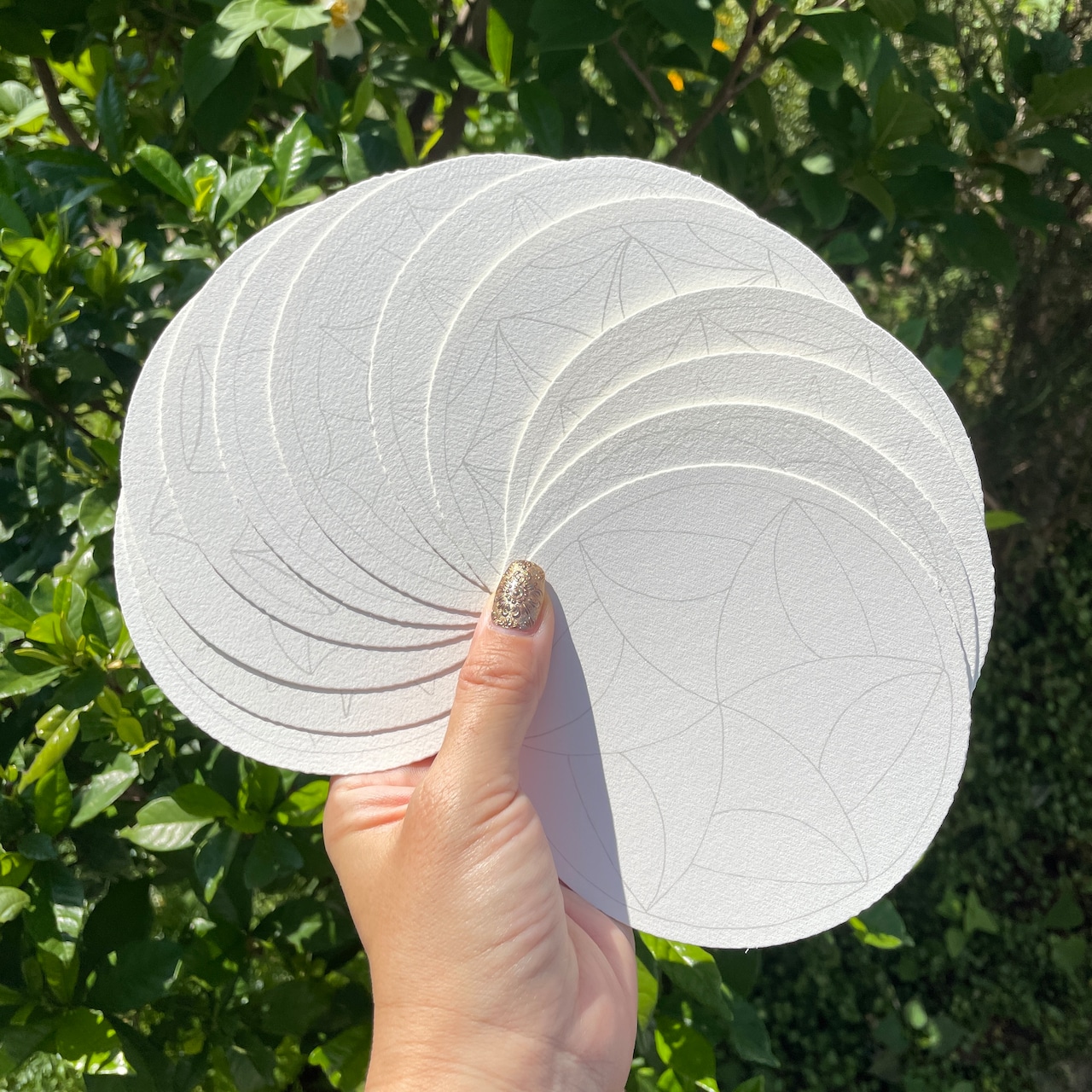 ゼンタングル社より現在販売されている12種類のプレストリング(うっすらとストリングが印刷されている)ゼンダラ。それぞれ一枚ずつをセットにしました。12枚全てのストリングが違うので、毎回違う楽しみ方ができます。